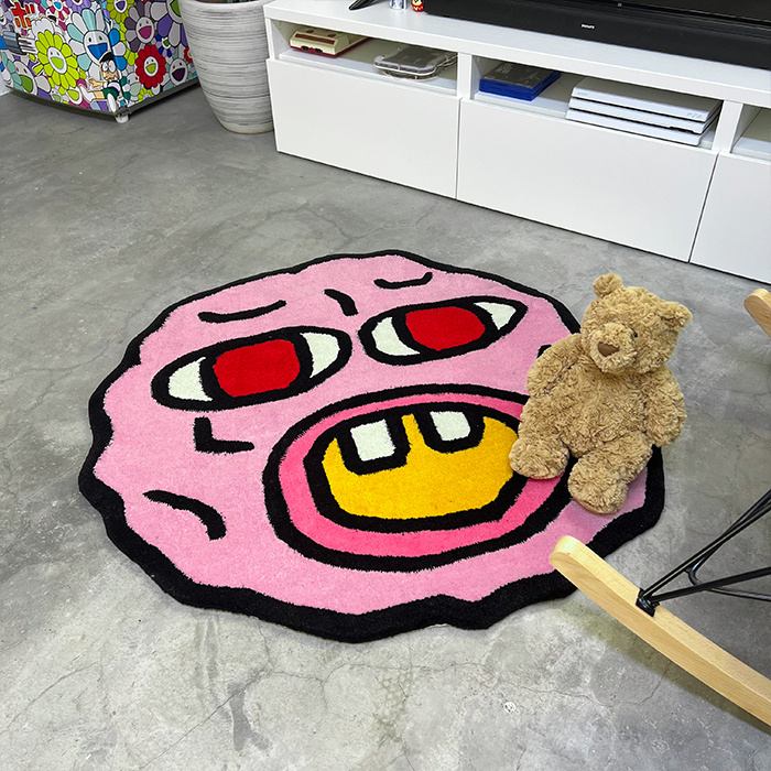 Handmade Round Cartoon Rug – Decorative Circular Floor Mat for Home